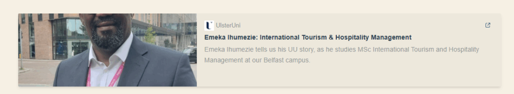 “Emeka Ihumezie: International Tourism & Hospitality Management at Ulster University”